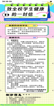 依据新学期以来,健康管理驿站就诊的同学情况,主要以饮食不当出现的腹痛、腹泻、楼梯踩空、雨天摔倒导致的外伤,上呼吸道感染、过敏等疾病。给同学们带来的极大的伤害。公司收到了来自“球盟会健康驿站及周口市第六人民医院”发来的健康指导建议。温馨提示球盟会各位学子们请认真遵守一下建议: