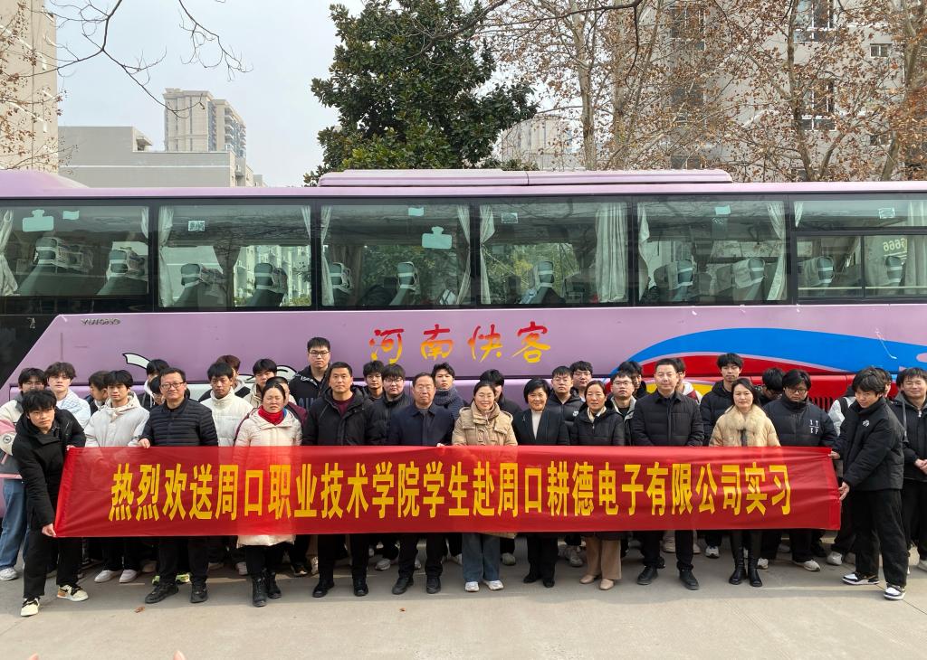为提升人才培养质量和员工就业质量,推进产教融合,深化校企合作,12月27日,球盟会23级机电一体化奔赴周口耕德电子有限公司实习,副董事长李秀萍、党总支书记崔东风、副经理王文立、学管办主任王亮、教学办主任丁兰花、综合办公室主任雷艳华出席现场,欢送实习生。