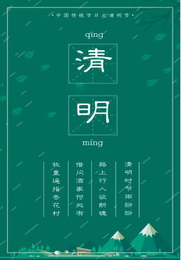 清明节,又称踏青节、行清节、三月节、祭祖节,节期在仲春与暮春之交。清明兼具自然与人文两大内涵,既是自然节气点,也是传统节日。清明节是传统的重大春祭节日,扫墓祭祀、缅怀祖先,是中华民族数千年以来的优良传统,不仅有利于弘扬孝道亲情、唤醒家族共同记忆,还可促进家族成员乃至民族的凝聚力和认同感。