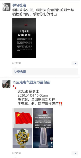 球盟会团总支响应国家提出的少出门、不聚集、不扎堆的疫情防控要求,号召广大青年员工清明节期间采取“云端”寄托哀思的多种别样方式,祭扫先人和英烈,下面就一起看看广大青年的行动吧!