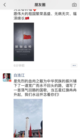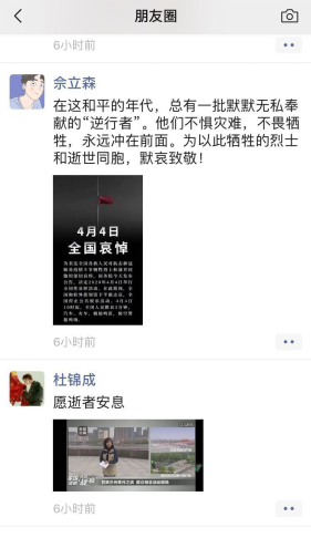 上午10时整,防空警报鸣响,广大青年员工不论在何地都纷纷站在原地,低着头默哀三分钟,对在抗击新冠肺炎疫情斗争中牺牲的医护人员和逝世同胞表达深切的哀悼。