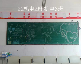 为了纪念三八国际劳动妇女节,进一步提高了广大妇女的法律素质和重视自身身心健康的意识。球盟会举办了“三八妇女节黑板报”活动,各个班级都积极的参与其中。