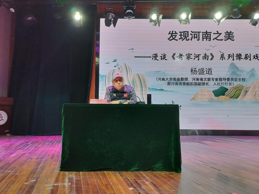 报告会现场人头攒动,气氛热烈。杨盛道厅长带着对家乡深深的眷恋和对文化的深刻理解,开启了这场精彩纷呈的漫谈。杨厅长深入剖析了豫剧戏歌的内涵。他提到,豫剧戏歌是传统豫剧与现代音乐文化相互交融的产物。其歌词犹如一首首生动的诗篇,用细腻的笔触描绘出河南的山川风貌、民俗风情。这些歌词,不仅仅是简单的文字组合,更是河南人民生活的真实写照,是河南历史文化的生动记录。